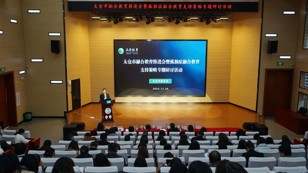 11月20日下午,太仓市融合教育推进会暨孤独症融合教育支持策略专题研讨活动在太仓市镇洋小学顺利举行,太仓市教育局副局长吴健出席会议。市教育局基础教育科负责人、市教师发展中心书记、教研员,市各中小学、幼教中心分管校长、分管主任、分管园长、资源教师和巡回指导师等参加会议。