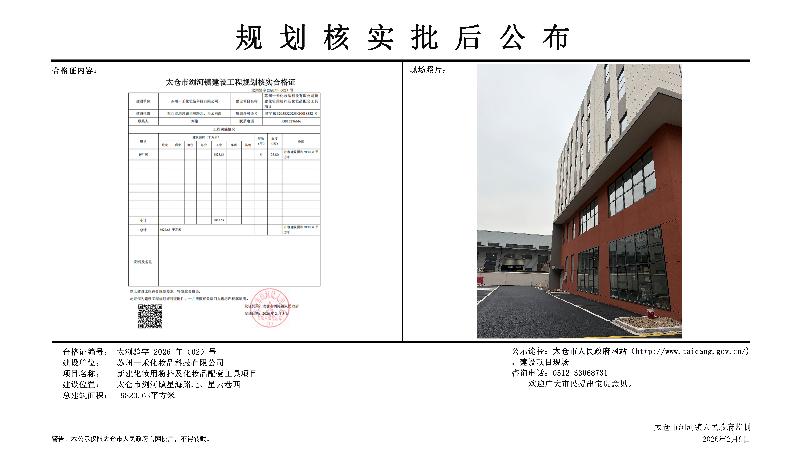 规划核实批后公布(苏州一禾化妆品科技有限公司新建化妆用粉扑及化妆品配套工具项目)