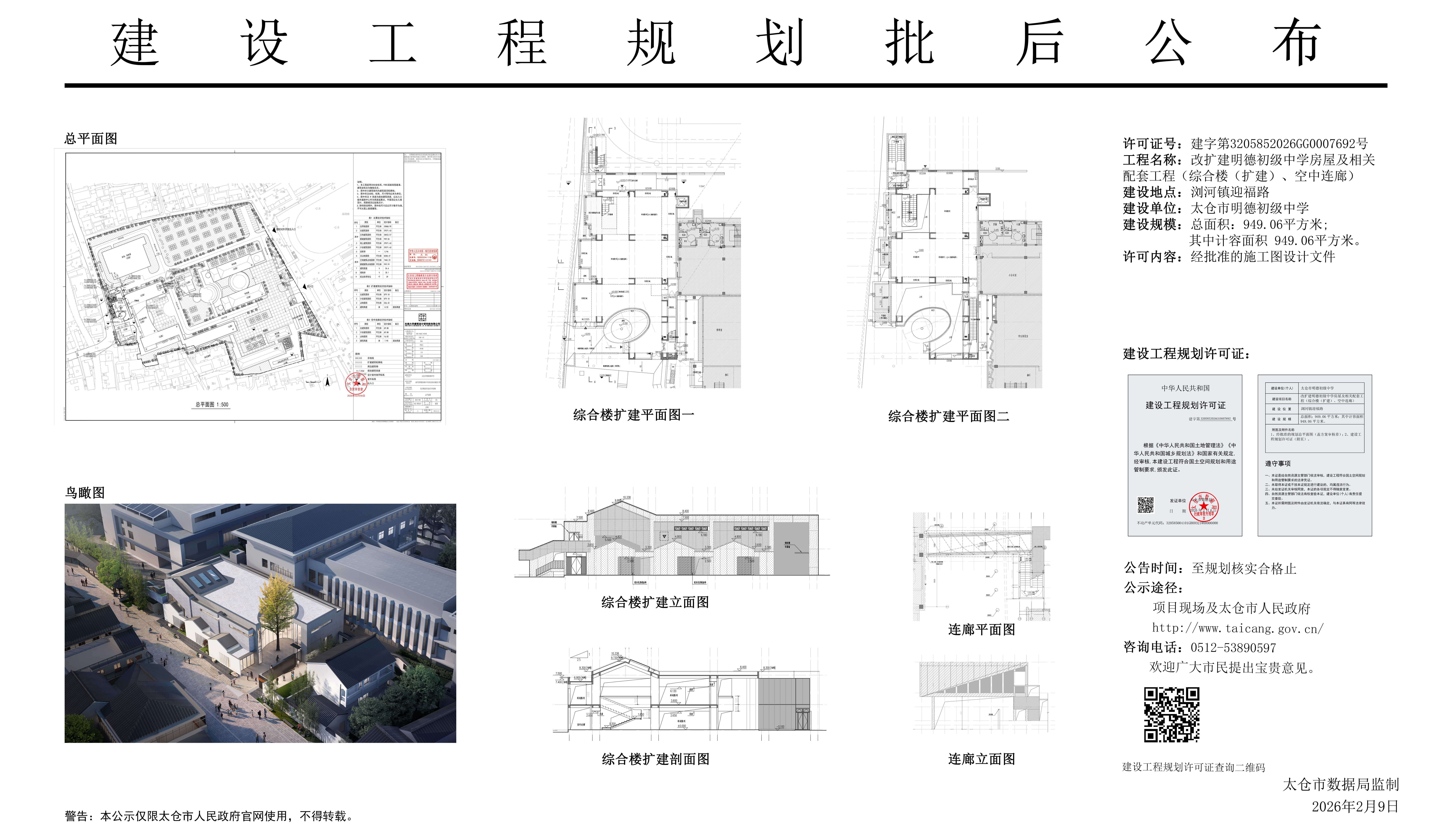 建设工程规划批后公布(改扩建明德初级中学房屋及相关配套工程(综合楼(扩建)、空中连廊))